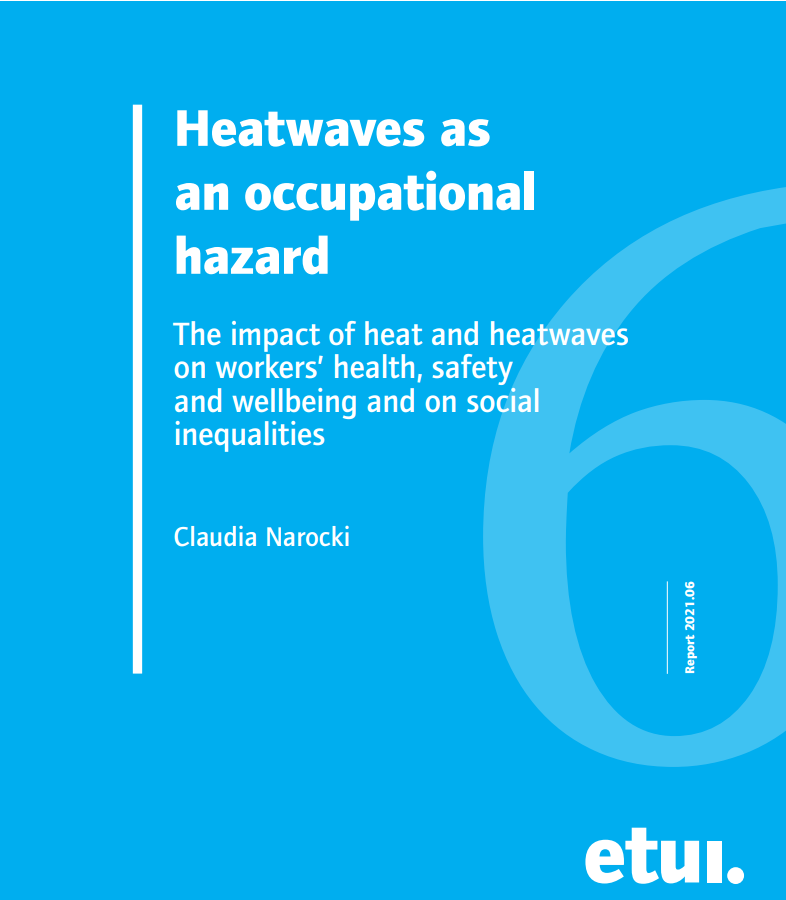 Vročinski val kot poklicna nevarnost – vpliv vročine in vročinskih valov na zdravje, varnost in dobro počutje delavcev ter na socialne neenakosti, ETUI, v angleščini, 2021