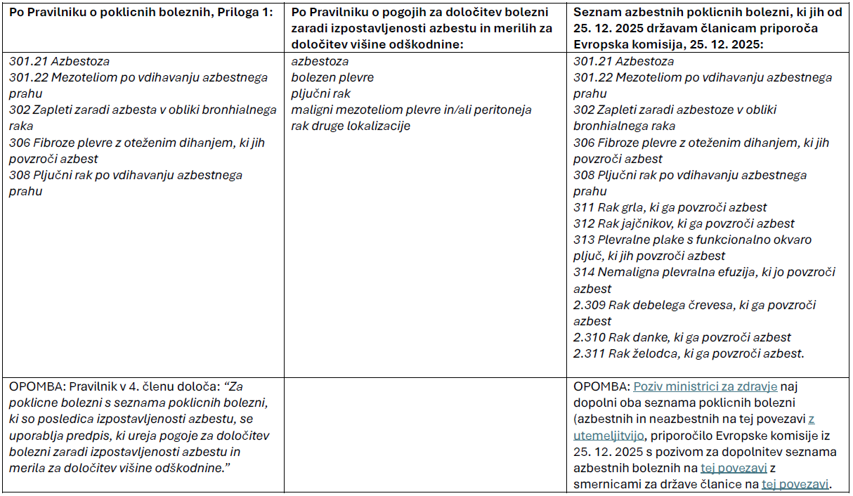Priporočilo Evropske komisije iz 25. 12. 2025 s pozivom za dopolnitev seznama azbestnih boleznih na tej povezavi